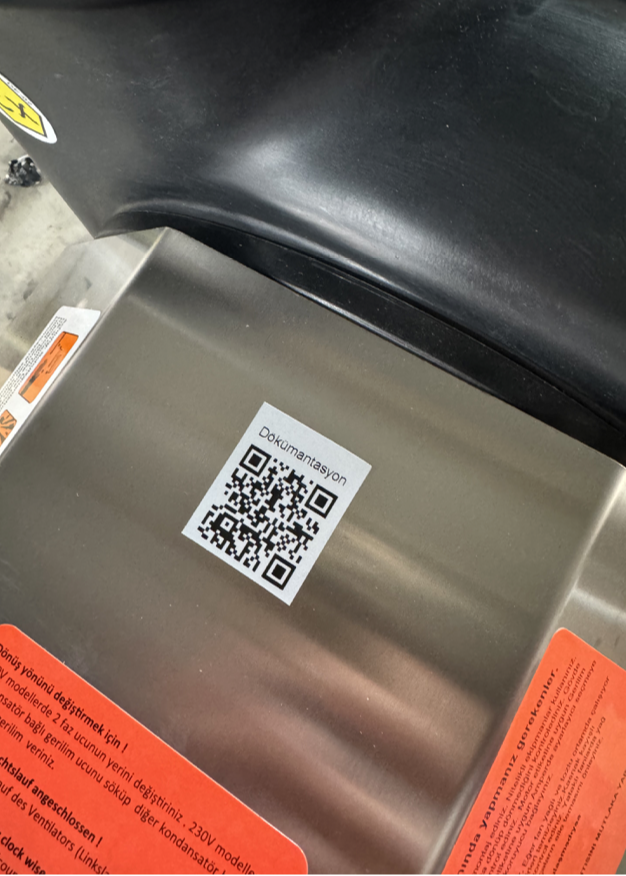 Her bir ürün üzerinde QR kod bulunmaktadır. Bu kod sayesinde Türkçe, Ingilizce ve Almanca olarak Montaj videoları, kullanım kılavuzları, Patlama çizimler, yedek parça dökümanları, Atex sertifikaları ve daha bir çok dökümana tek tık ile ulaşabilirsiniz.